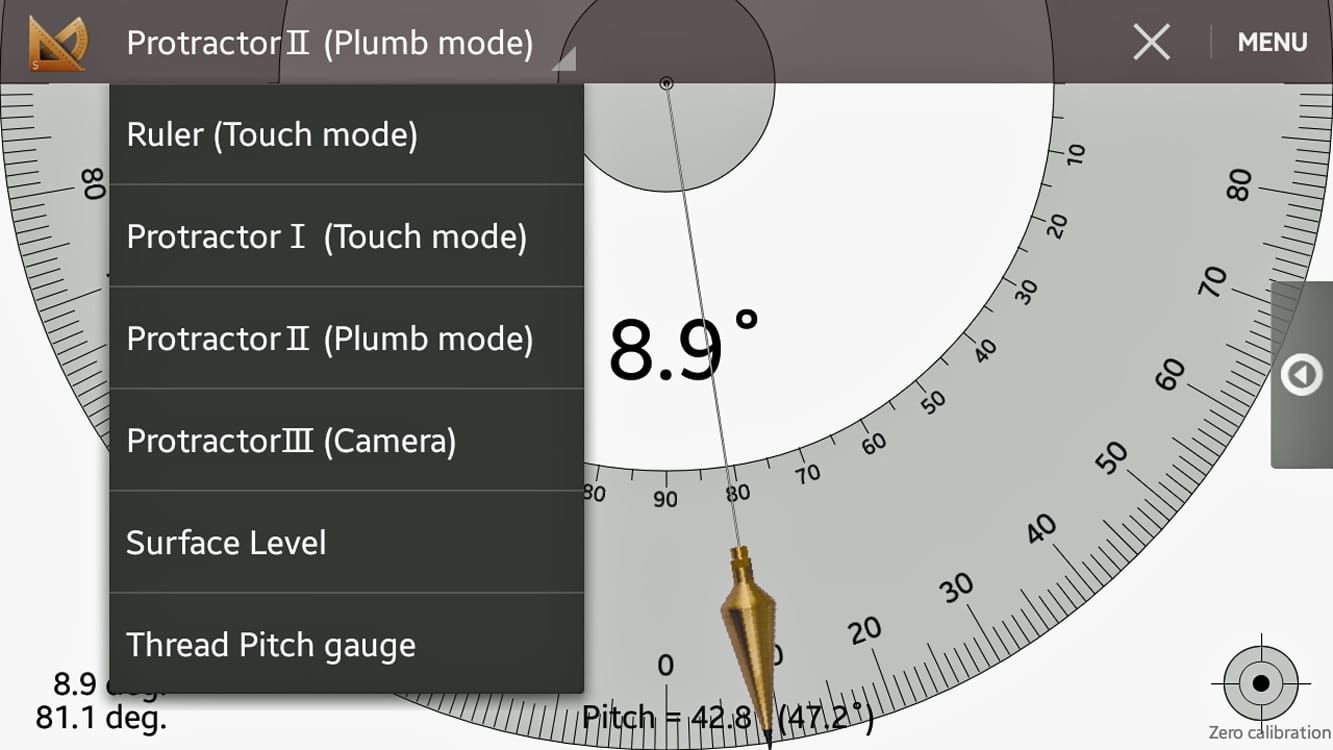 For measuring how level objects are or vertical angles, traditional bubble levels, protractors, plumb gages, and sextants do a fine job. Android apps let you tuck the functions of all of these into that marvelous little device in your pocket. Smart Ruler Pro has a Plumb Bob Protractor (touch to capture/freeze function), Circular and Linear Bubble Level, and—just for fun—an on-screen ruler/size gauge and thread pitch gauge (with US, Metric, Pipe Thread, and Screw Sizes). Handy!