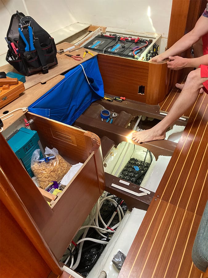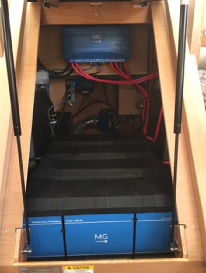 A modern lithium battery installation. Compact, efficient, and low-maintenance, designed for long-term cruising reliability.