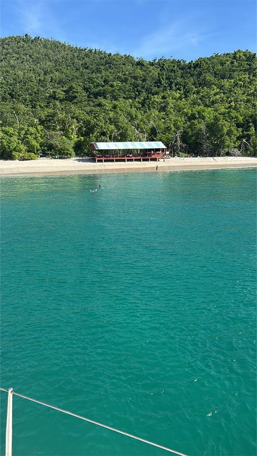 From Anse La Roche, we sailed over to Sandy Island, a postcard-perfect strip of sand and palms that was heavily damaged by Hurricane Beryl in 2024. The storm split the island and uprooted most of its trees. What remains is a powerful reminder of both nature’s force and the resilience of this region.