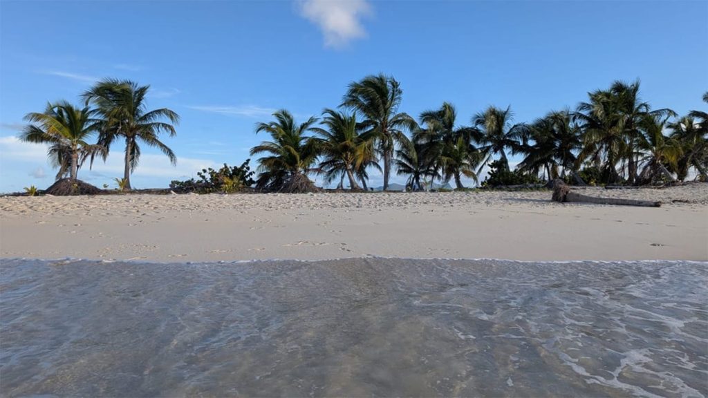 On the far side of the island lies a stunning crescent-shaped beach that’s nearly impossible to reach. We tried by land but ran into cactus and plenty of prickly stickers. We tried by dinghy, but the swells were crashing too hard over the reef to land safely. Maybe next summer, when the winds settle down, we’ll make it.