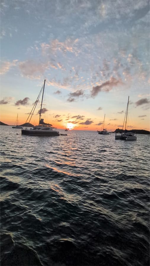 Next stop was Carriacou. We anchored in Anse La Roche and planned an afternoon of cockpit teaching followed by a race around Union Island. If you have ever anchored at Anse La Roche, you know what a treat it is. The water is calm, the beach is beautiful, and the whole bay feels like a small pocket of perfection. After our race, we headed ashore for Tim’s legendary lobster beach BBQ, which never disappoints.