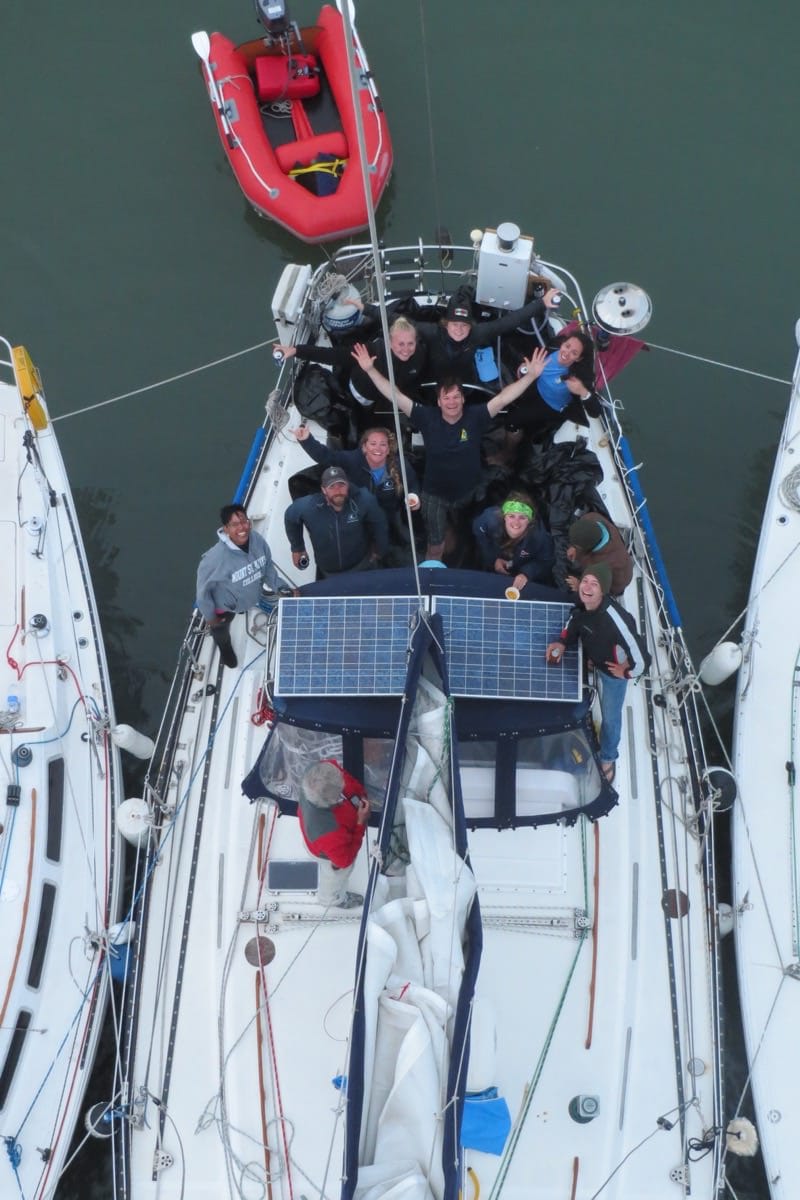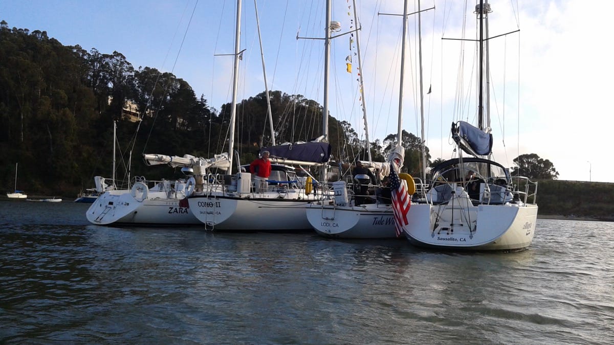 After a typically foggy and windy attempt to sail out that iconic Golden Gate, we changed course and headed to our rendezvous point, Clipper Cove. I kept an eye on the depth finder as I navigated the notoriously shallow water holding my breath. After we were successfully rafted up to Coho II in a mess of lines that promised we wouldn’t drift away in the night, I sighed “take off your shoes and feel that boat beneath you feet.” I couldn’t help myself and despite a bit of a breeze I kicked off my shoes, my crew following suit.