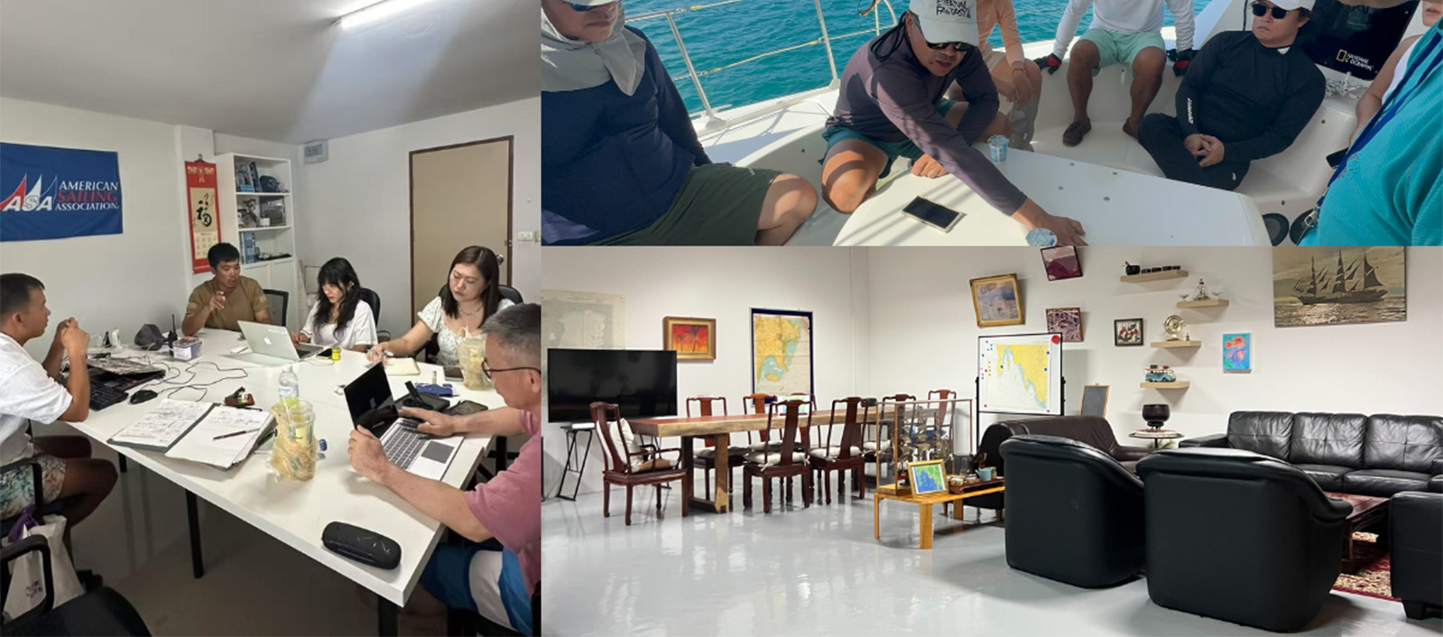Our training sites are centered around Chalong Pier, including an indoor classroom just 30 meters from the dock, an outdoor projection classroom at the sailing club, a teaching room inside the marina, and a dedicated small boat and camping base on Lon Island. These locations support both short courses and immersive, multi-day sailing camps combining theory and hands-on experience.